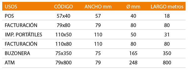 *Nuestro papel térmico está libre de BPA. El BPA es un producto químico o compuesto llamado Bisfenol A (abreviado comúnmente como BPA), usado principalmente en la elaboración industrial de recipientes plásticos en policarbonato.